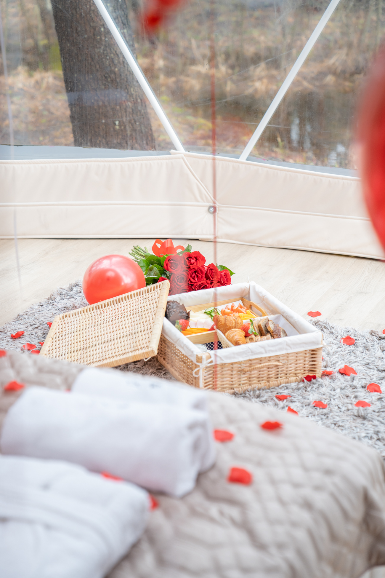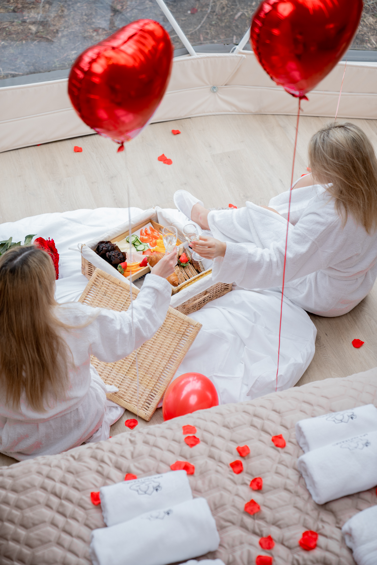 | ROZSZERZONY (5 róż/ 9 róż/ 11 róż, płatki róż, świece, balony, balia na wyłączność min. 3h, prosseco, kosz śniadaniowy) | od 360zł* |