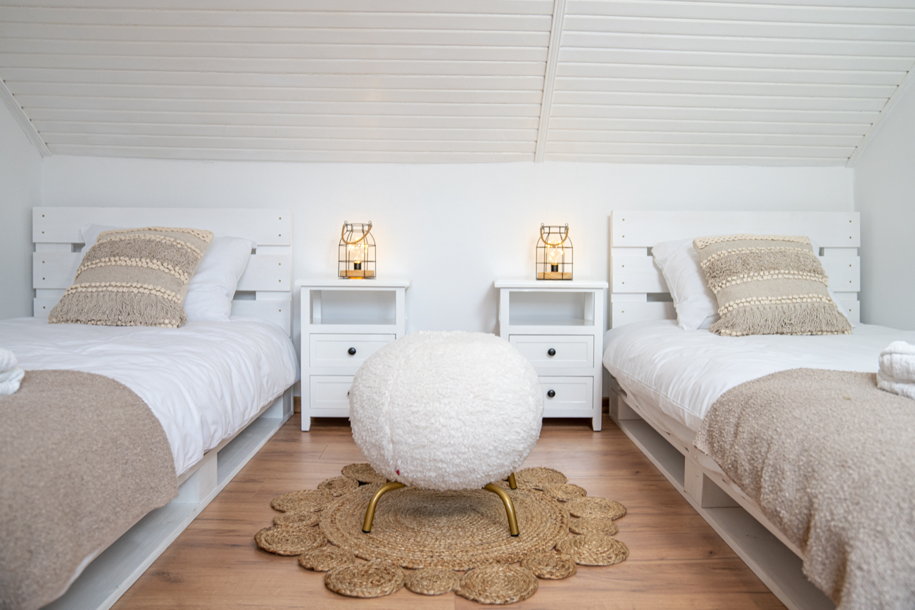Sunny House to nasz największy domek. Posiada w pełni wyposażoną kuchnię, jadalnię, salon, łazienkę i dwie sypialnie.